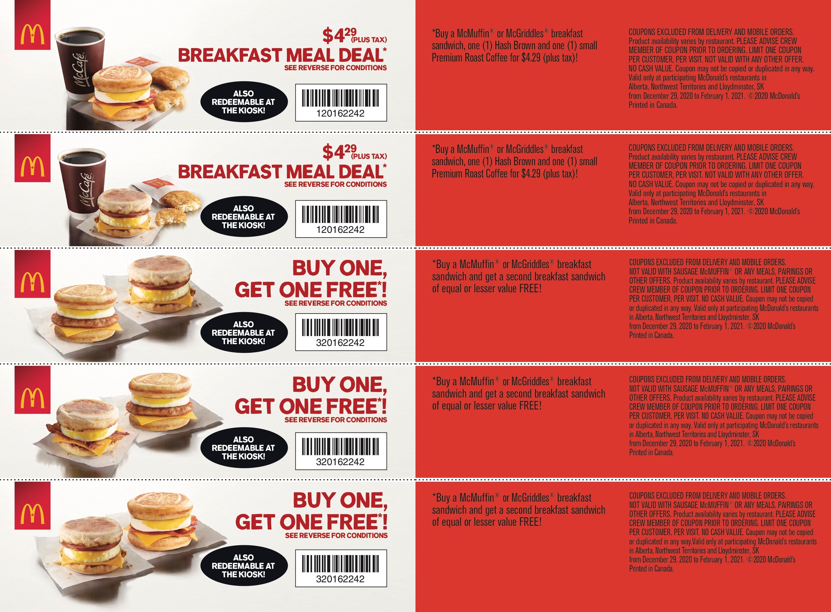 McDonald's Canada New Coupons: New Coupons Available for ... from smartcanucks.ca Mcdonald's canada is welcoming back their coupons for 2015 with options of combining either buy one get one coupons, two can dine, one can dine and plenty more. Mcdonald's canada serves up all your favorite mcd's staples! Today's top mcdonald's canada discount: Mcdonald's coupons free meal 2021: Once you've registered and activated the mcdonald's app, you can place a mobile order or simply scan the qr code on your rewards card before you pay to start collecting. Enjoy free delivery & more | verified & tested today! Available here on our website and on the mcdonald's app† with mobile ordering. Save with mcdonalds coupon canada & promo codes coupons and promo codes for december, 2020.